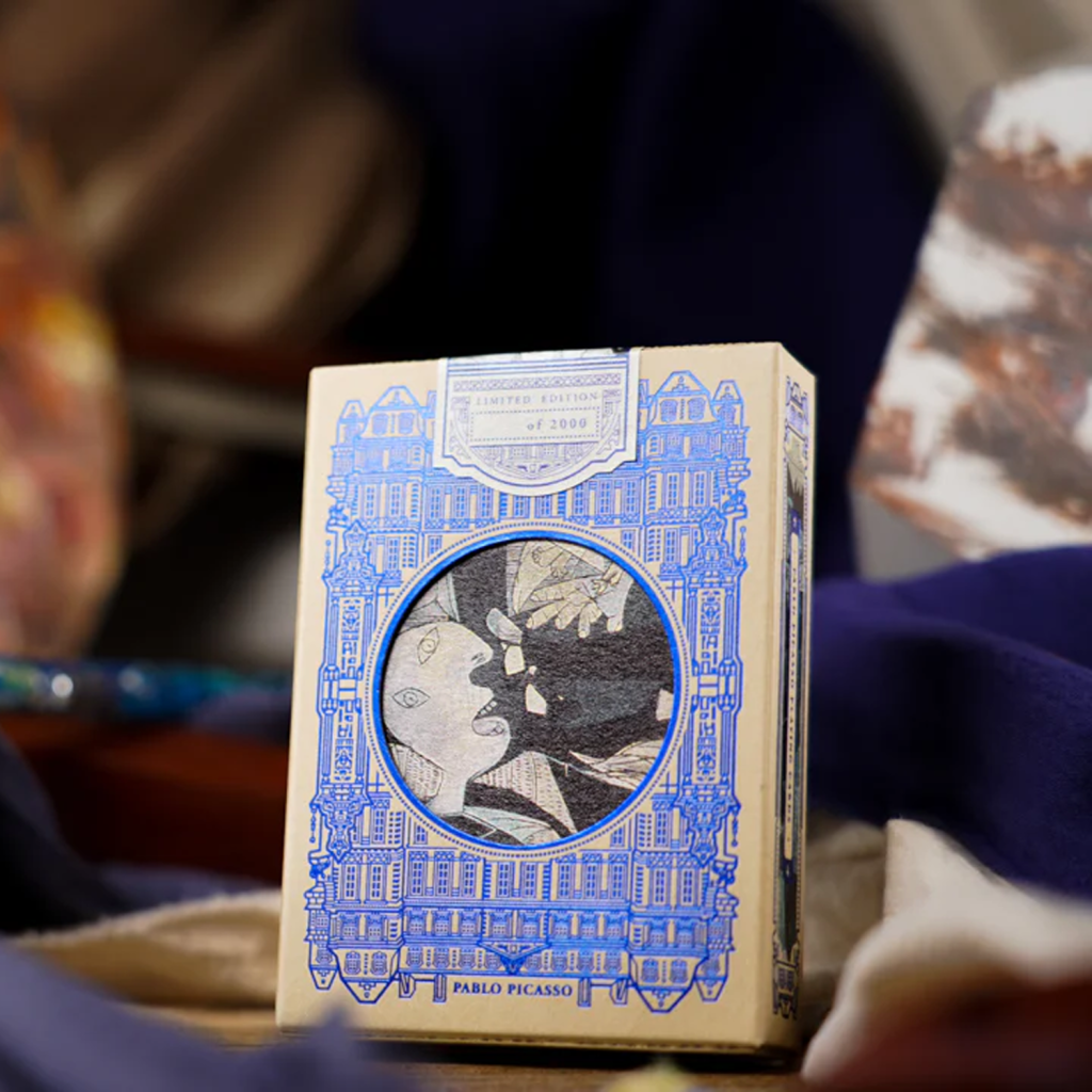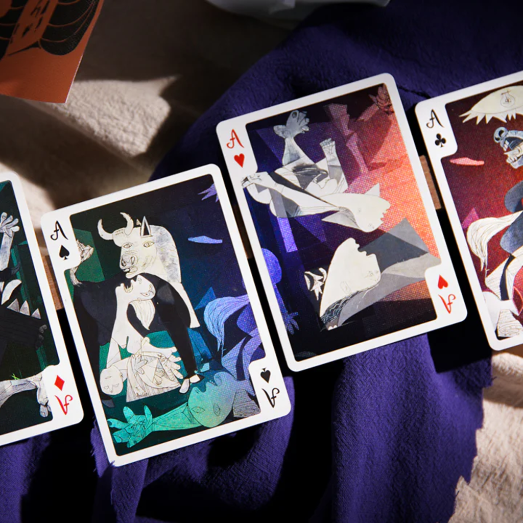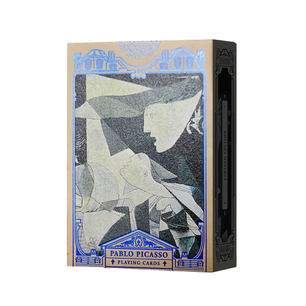 受到畢卡索經典作品《格爾尼卡》的啟發,這款定制的牌盒採用全息箔紙製作,散發出優雅的奢華感。啞光紙張的質感進一步強調了歷史的沉重感。