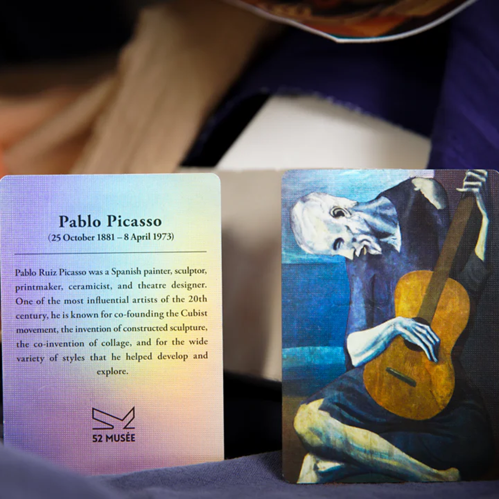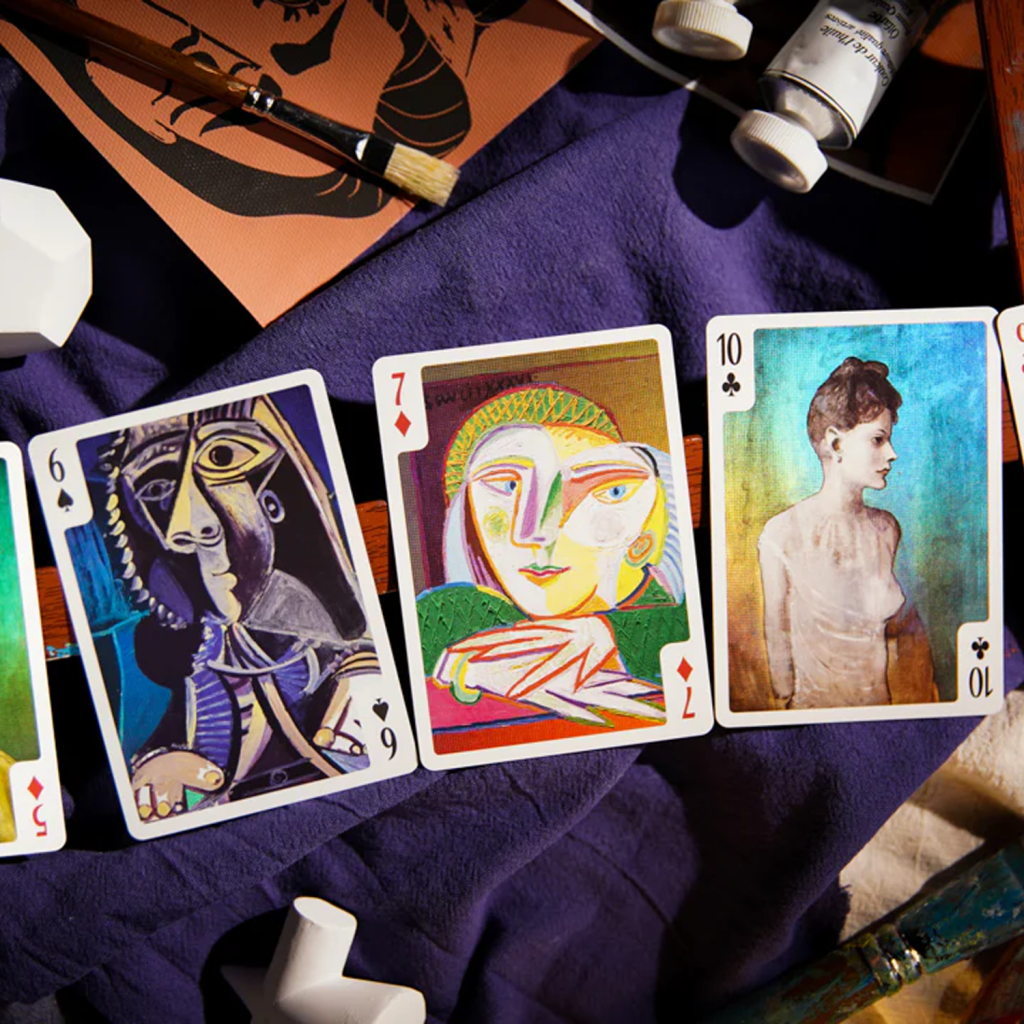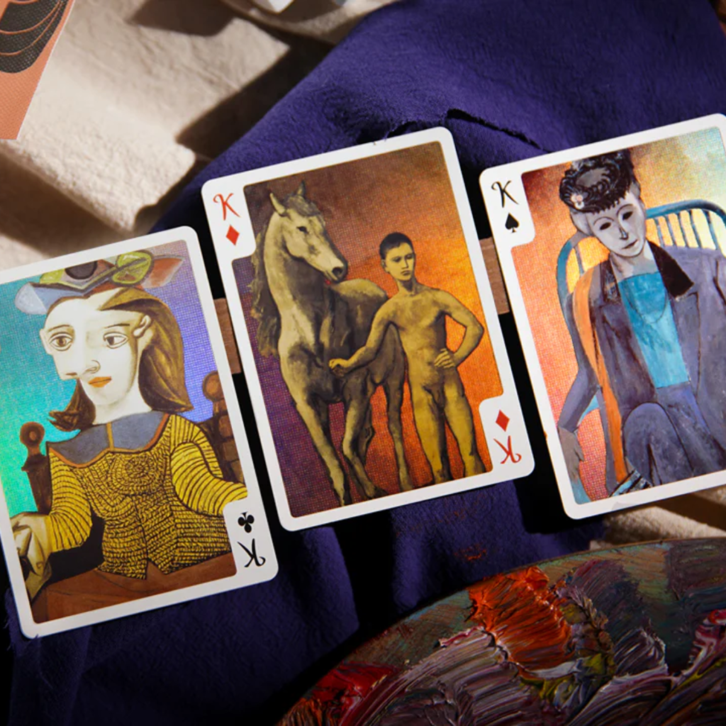 受到畢卡索經典作品《格爾尼卡》的啟發,這款定制的牌盒採用全息箔紙製作,散發出優雅的奢華感。啞光紙張的質感進一步強調了歷史的沉重感。