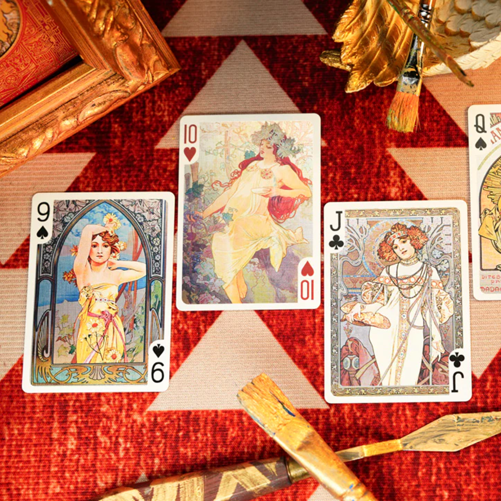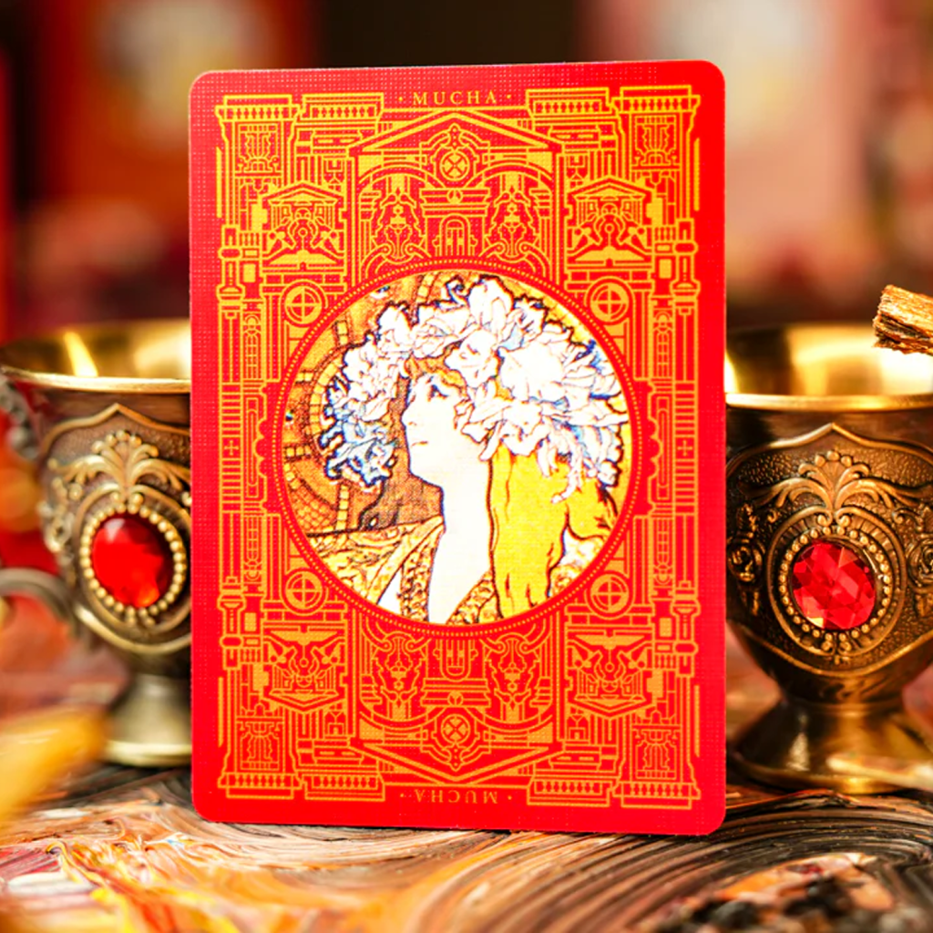 On the front of the box, the window of art shows Gismonda, the work that made Mucha famous, while on the back of the box you can see Zodiac, one of the most commercially sensational works that was published in Feathers, an important platform for art magazines.
