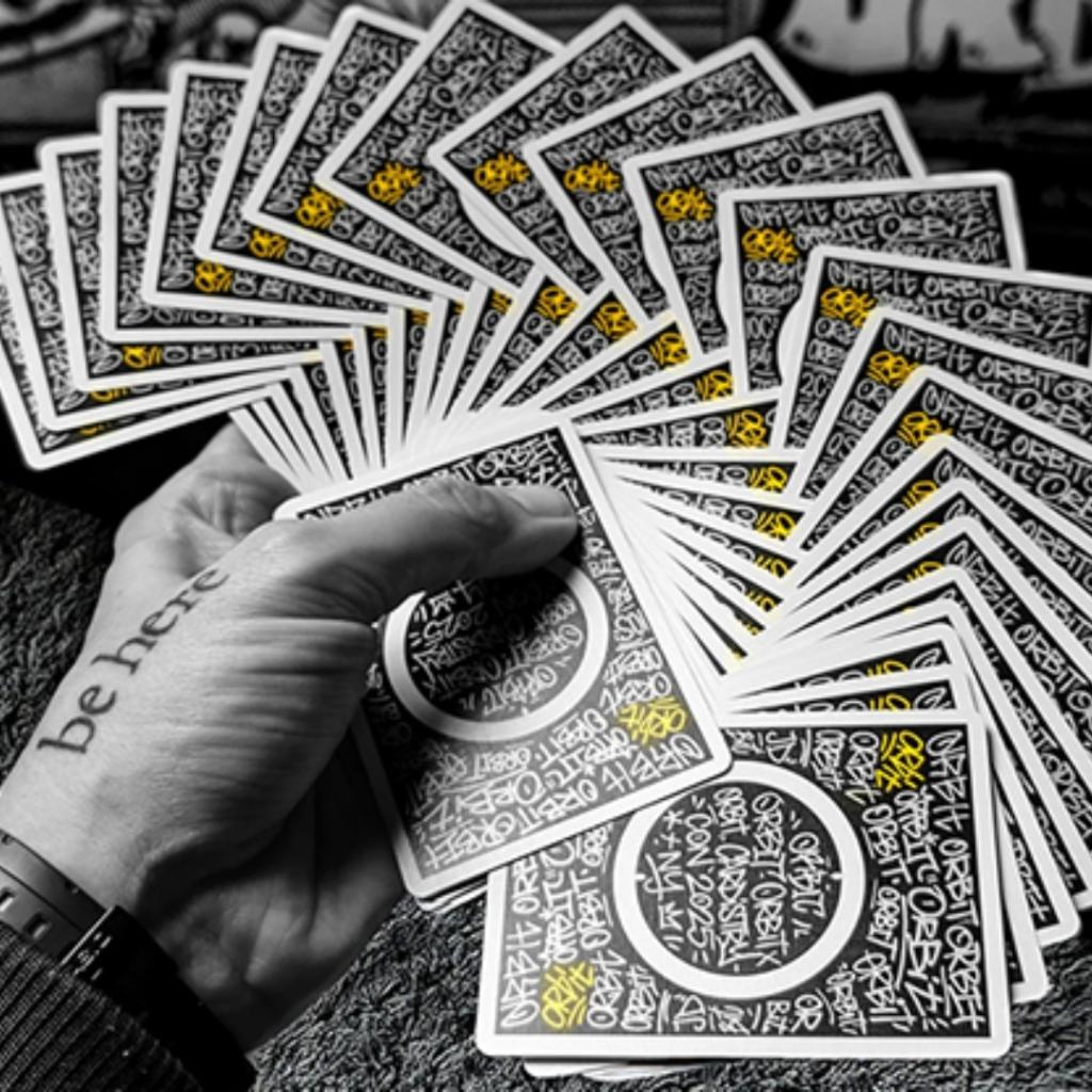 CV4 撲克牌來了!專為紐約花式撲克大會打造。牌背上的金屬墨水手寫風格標籤在黑色背景的映襯下格外醒目。這副牌以計程車黃點綴,靈感源自紐約地鐵系統和塗鴉藝術。闊別一年後回歸,感覺真好!