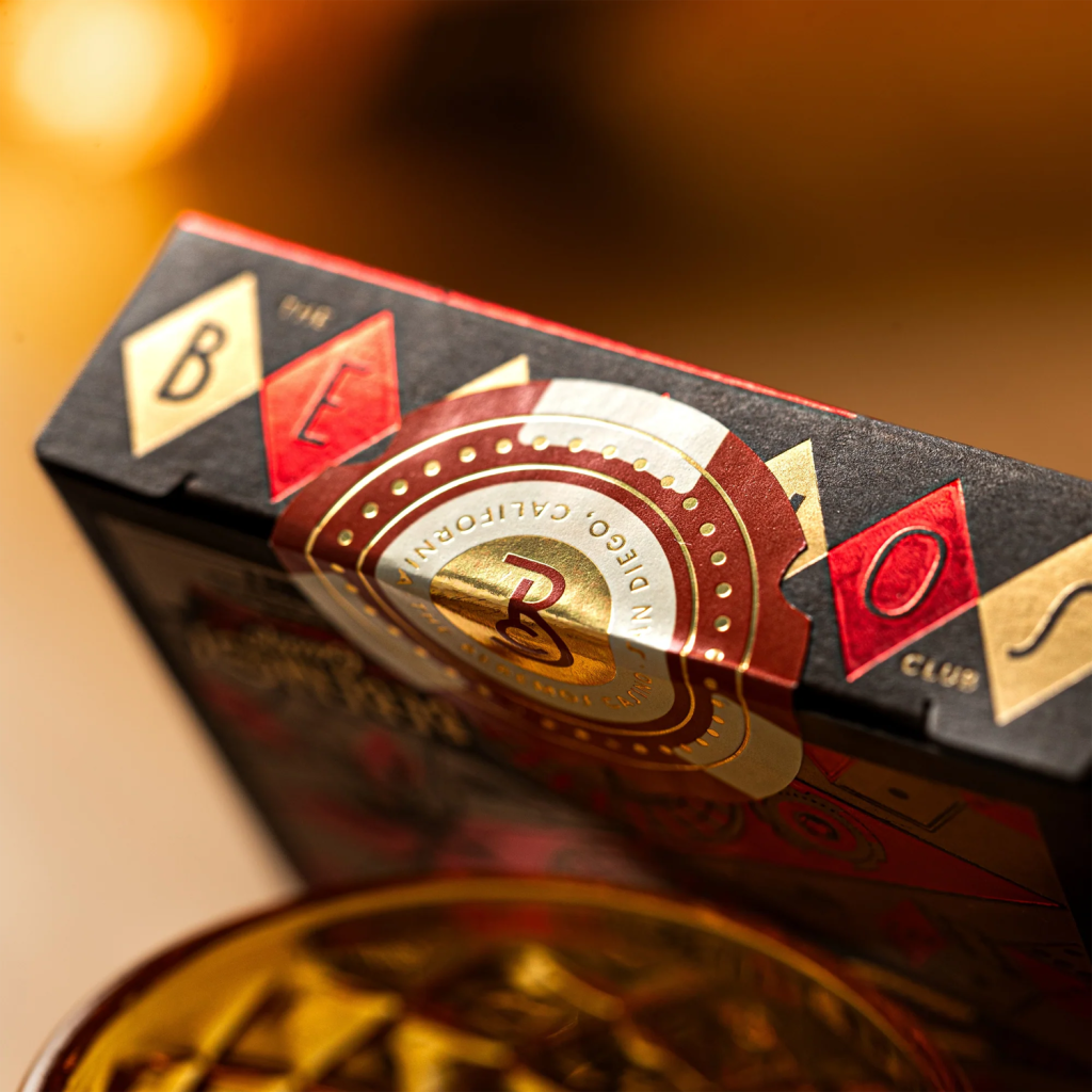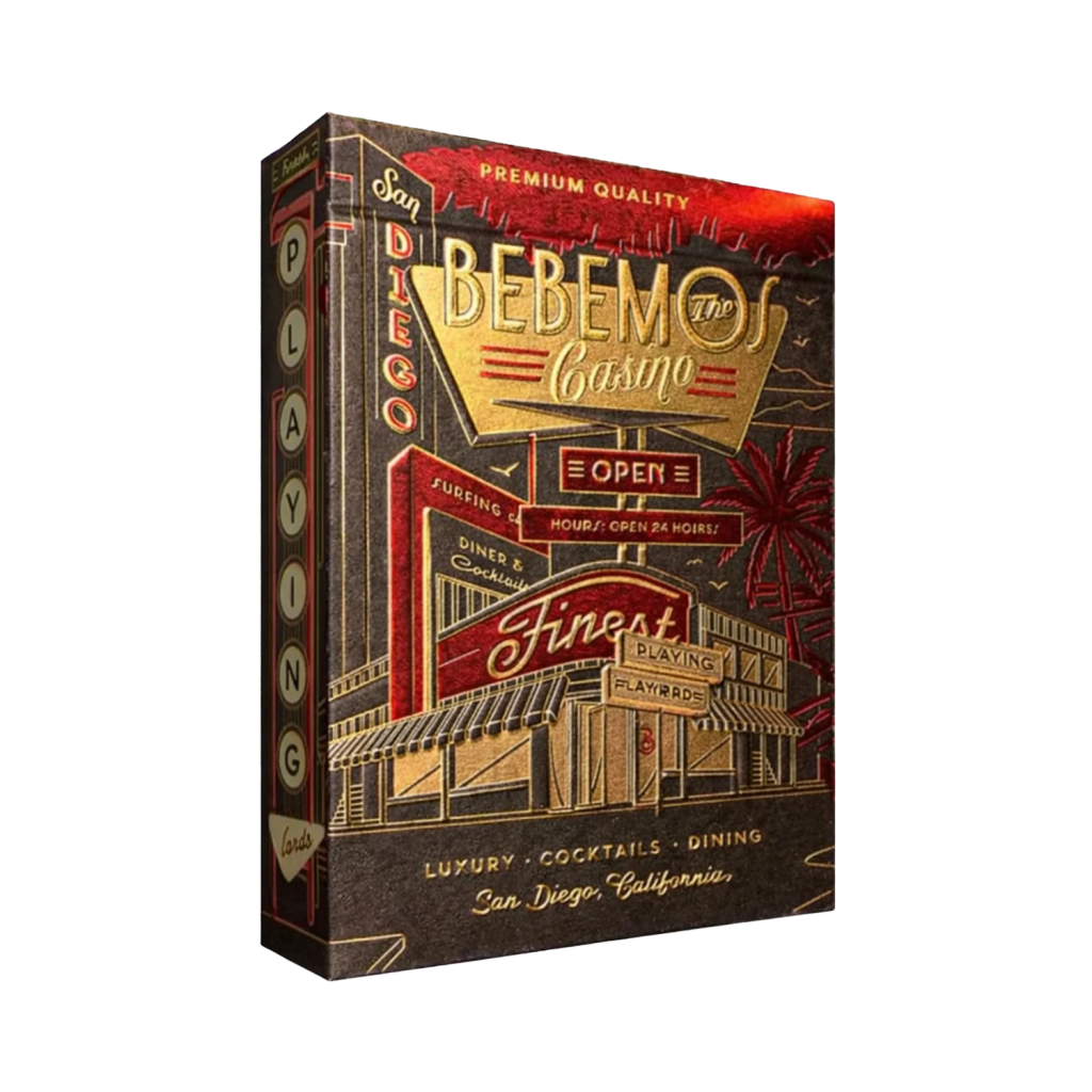 這是一款與總部位於加州聖地牙哥的龍舌蘭品牌 Bebemos 合作打造的頂級撲克牌。設計點綴了金箔、紅箔與香檳箔,展現出復古質感與優雅、高端、精緻的美學風格。