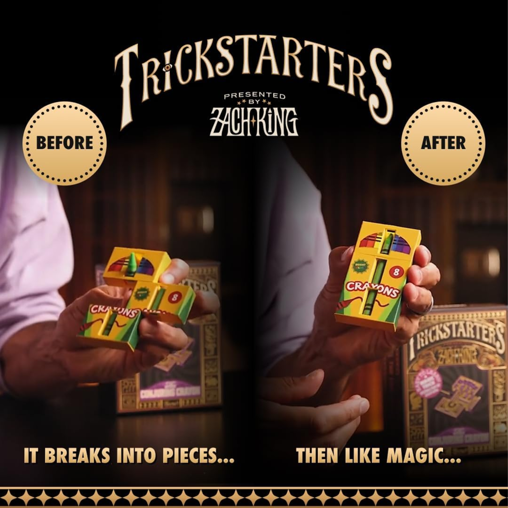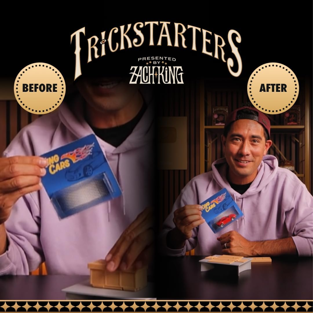 每一款《Trickstarters》魔術都由 Zach King 親自教學,提供清析易懂的指導,讓你一開箱就能在幾分鐘內學會並開始表演!特別感謝 Zach King、Tenyo 以及 Blake Vogt 將這些創意變為現實,呈現在你的手中。