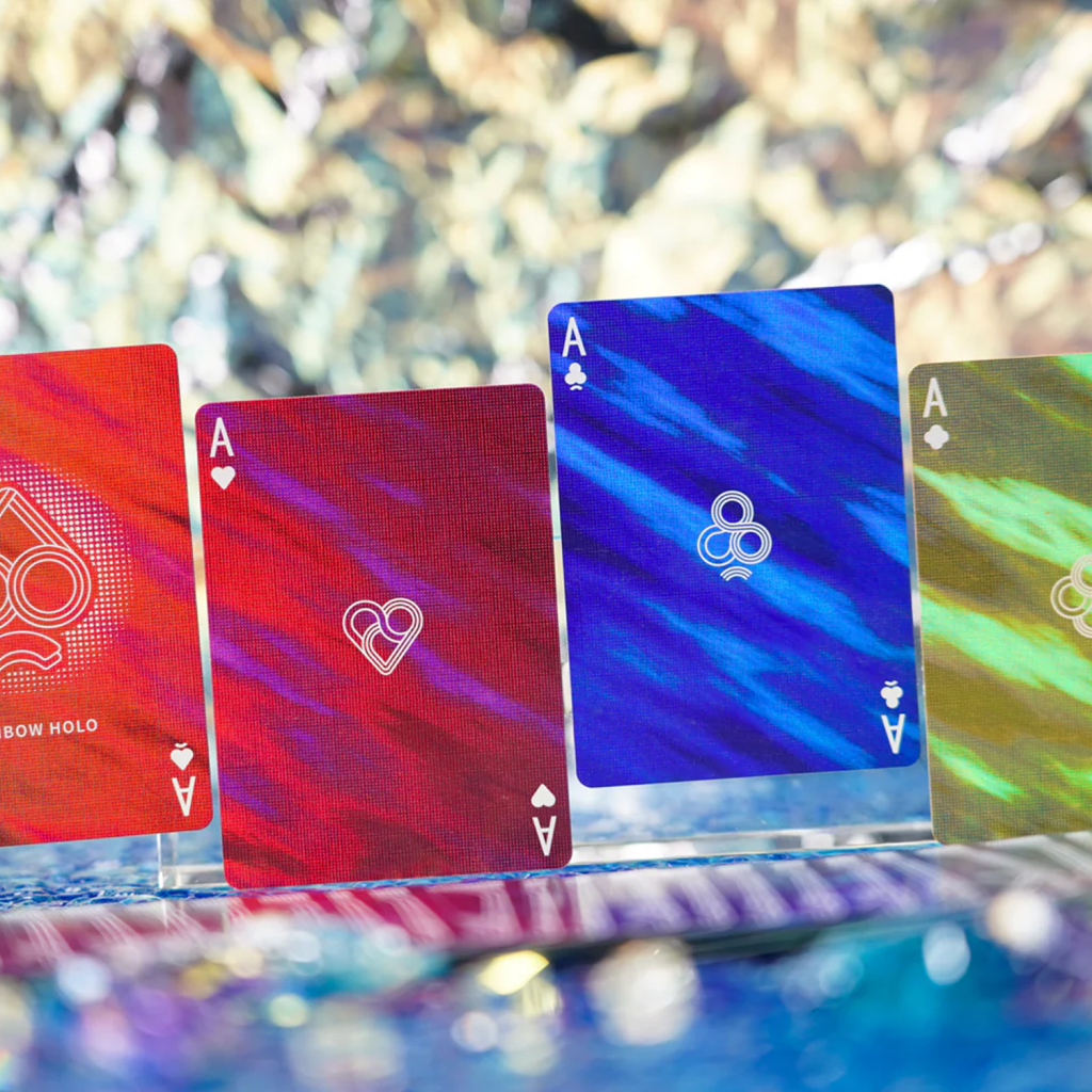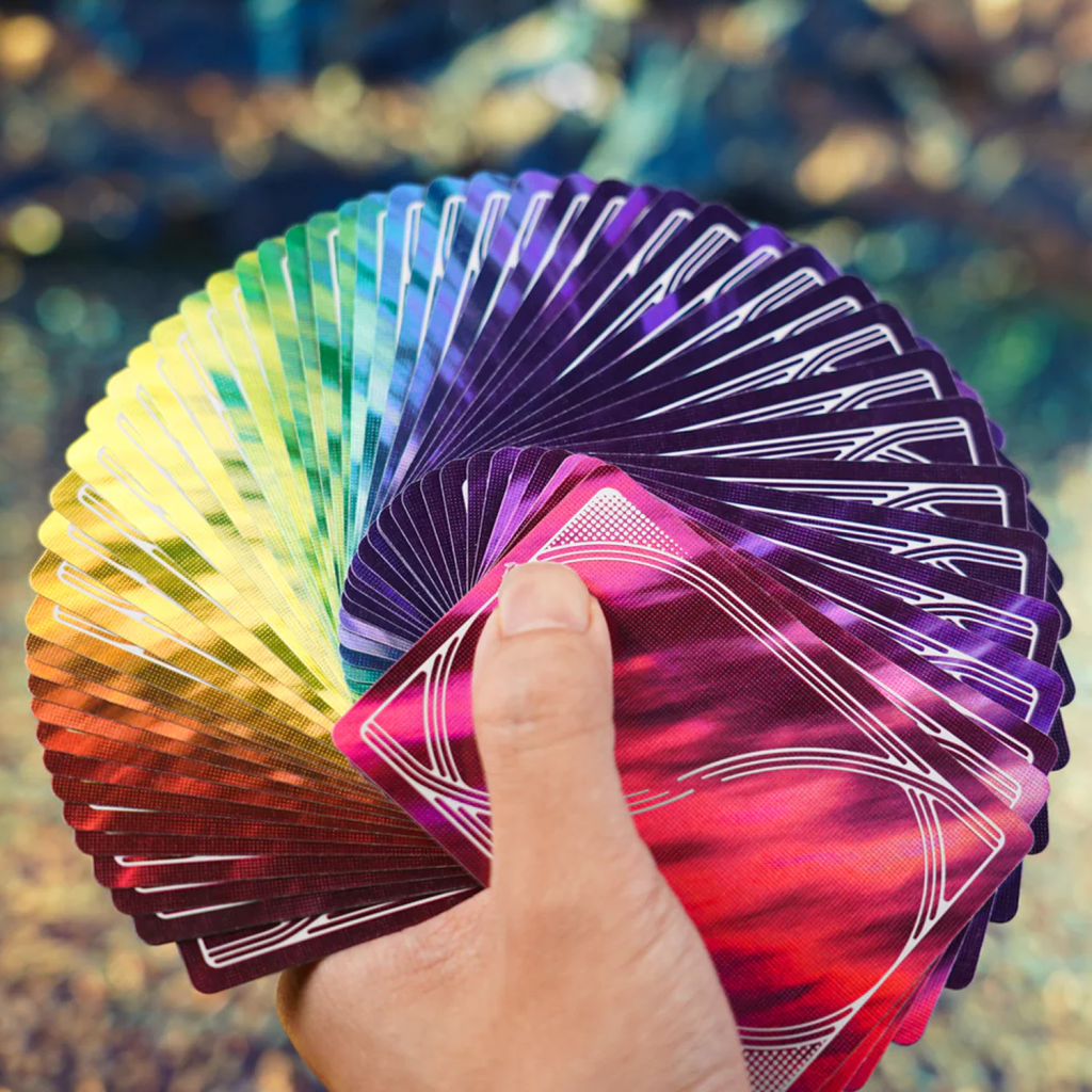 彩虹是大自然燦爛的禮物,長期以來以其萬花筒般的魅力讓我們心曠神怡。陣雨過後,我們會看到這些輻射光譜,它們總是讓我們的感官著迷。現在,想像這些令人著迷的色彩融入撲克牌中,創造出前所未有的創新全息盛宴。