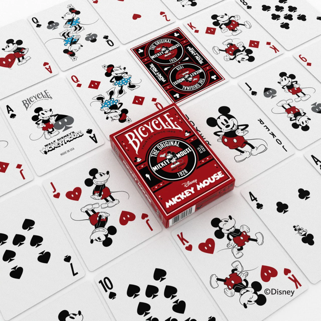 Bicycle Disney Classic Mickey Mouse 撲克牌以經典的米奇插畫為特色,並在整副牌中融入了許多米奇的標誌性視覺元素。