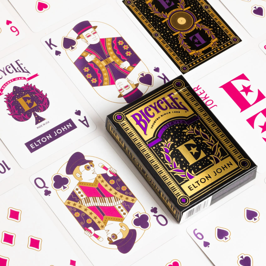 與由 Bicycle 推出、慶祝傳奇「火箭人(Rocket Man)」的強烈聯名 —— 艾爾頓·強(Elton John)系列撲克牌,一同體驗音樂傳奇的璀璨光芒。