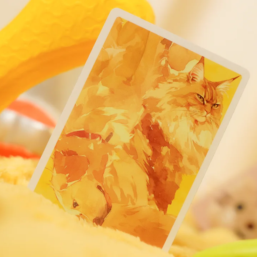 甲板採用暖色調設計,擁有緬因貓和黃金獵犬等心愛的寵物,帶來歡樂和舒適。收納盒的光柵印刷營造出迷人的雙插圖幻覺,增強了整體魅力。