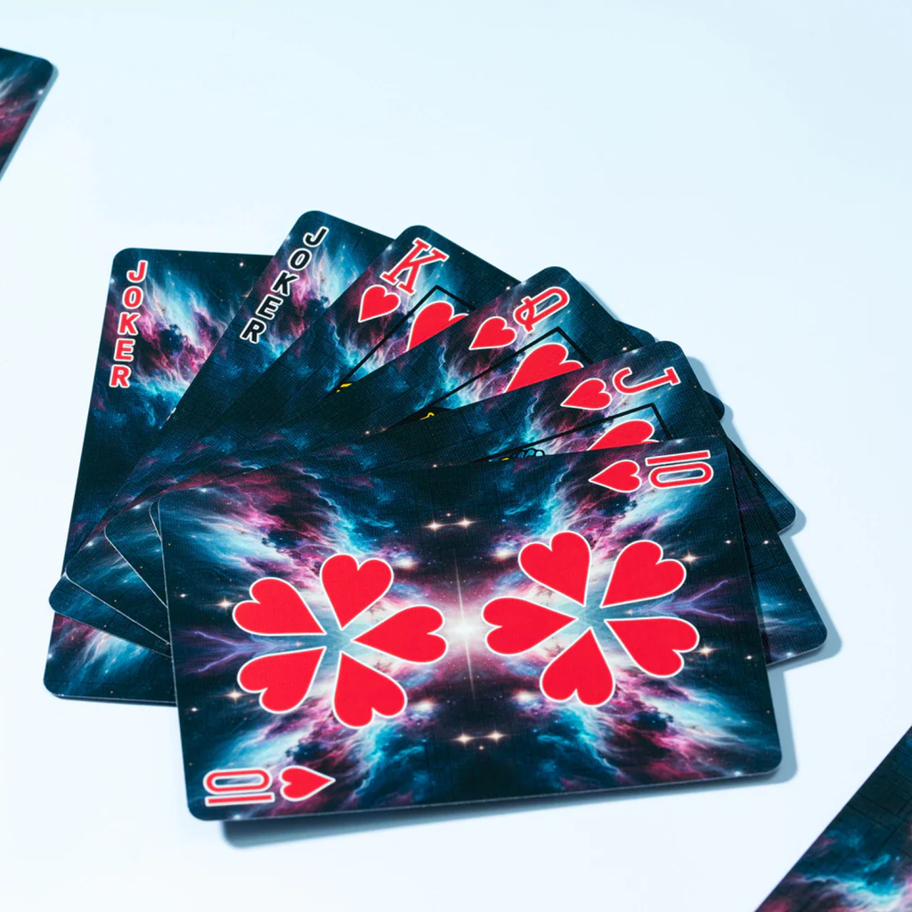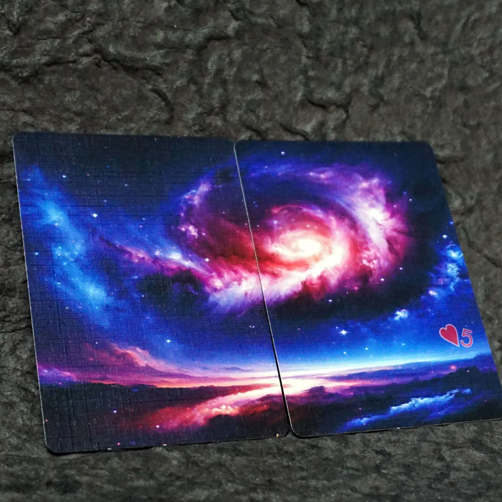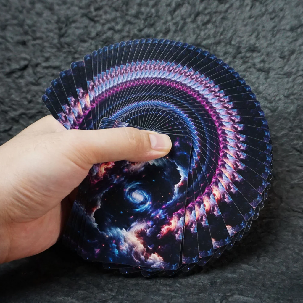 宇宙的奧秘就隱藏在這些撲克牌中。當三層甲板放在一起時,它們展現出一個巨大、雄偉的星雲。