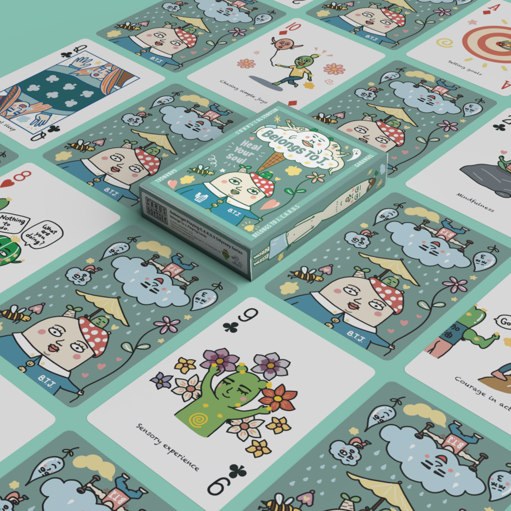 Belongs To J.的靈感來源於我對植物的熱愛,尤其是仙人掌和塊根。它們在困難的環境中仍能茁壯成長,讓我想到了每個人都可以在逆境中找到自己的力量。心靈啤牌的設計便是基於這樣的信念,我希望能夠鼓勵人們,無論面對什麼挑戰,都能保持樂觀,找到內心的平靜。