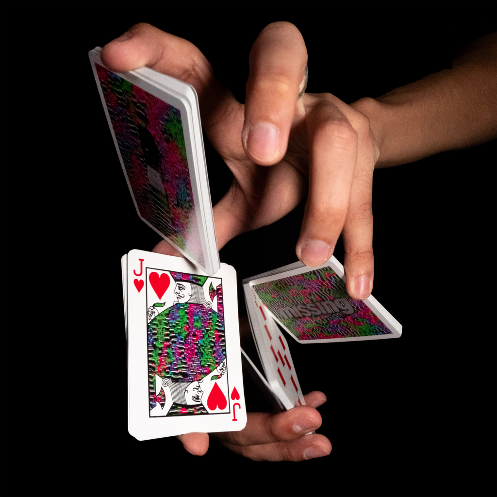 與 COLORSHIFT 合作設計,Analog 撲克牌是利用錄放影機(VCR)、類比視訊混頻器以及調製反饋迴路創作而成。