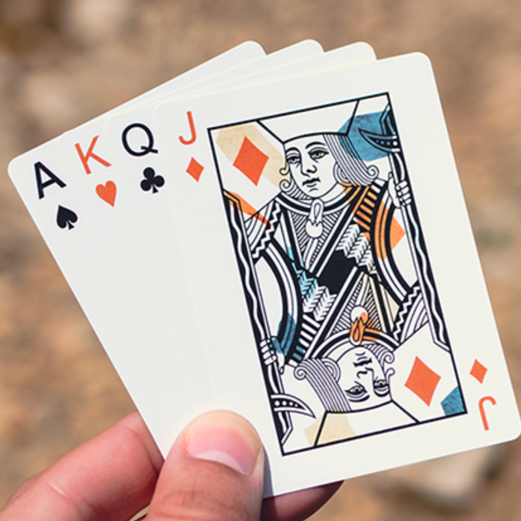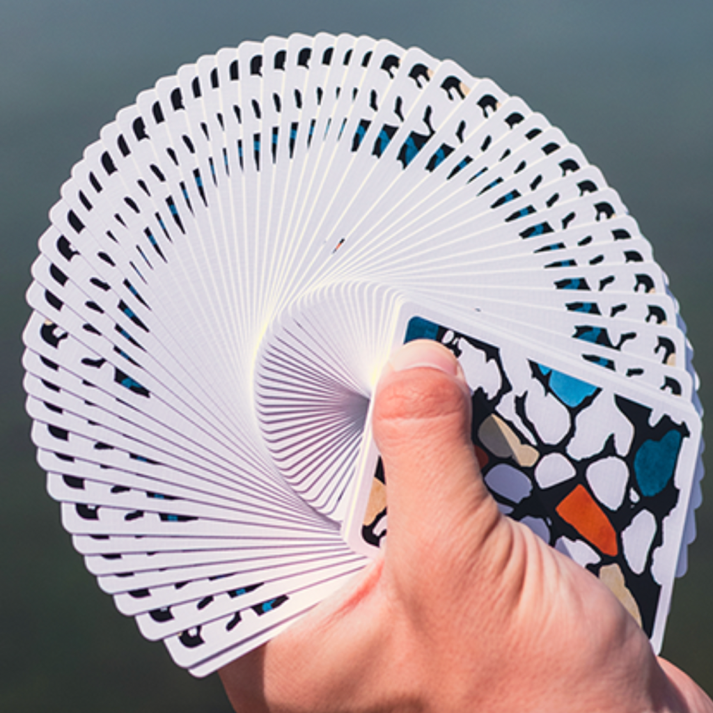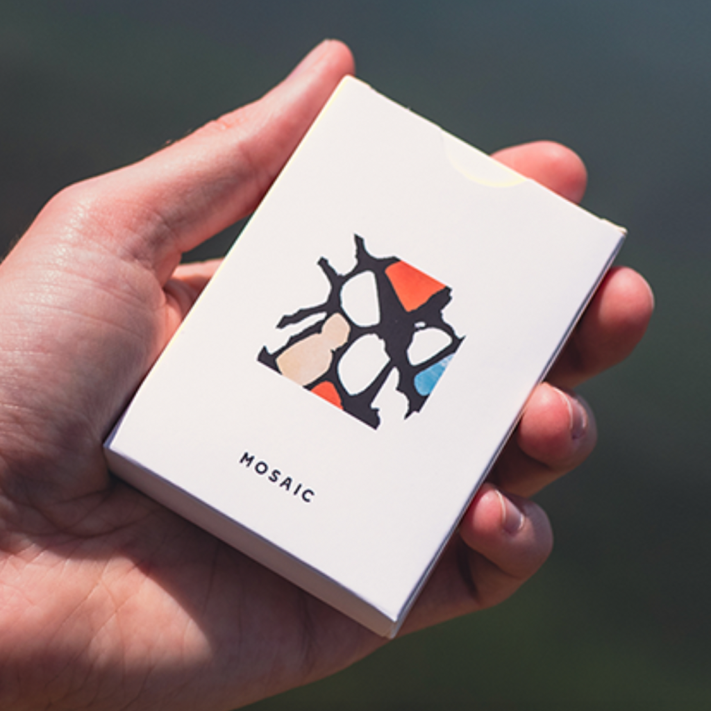 Mosaics 撲克牌將藝術風格與日常功能相結合。它們印刷在耐用的紙質卡片上,具有亞麻表面,設計以實現順滑洗牌、乾淨剪裁和穩定的手感。背面的設計展示了一種大膽的拼貼風格,為您的桌面或展示增添了一陣色彩和質感。
