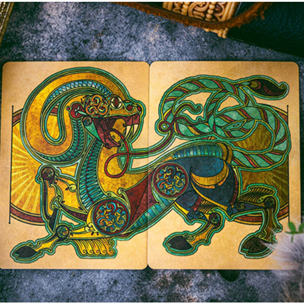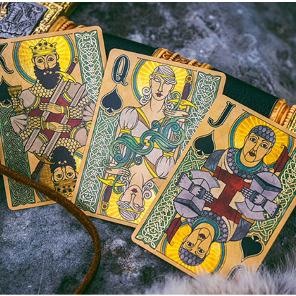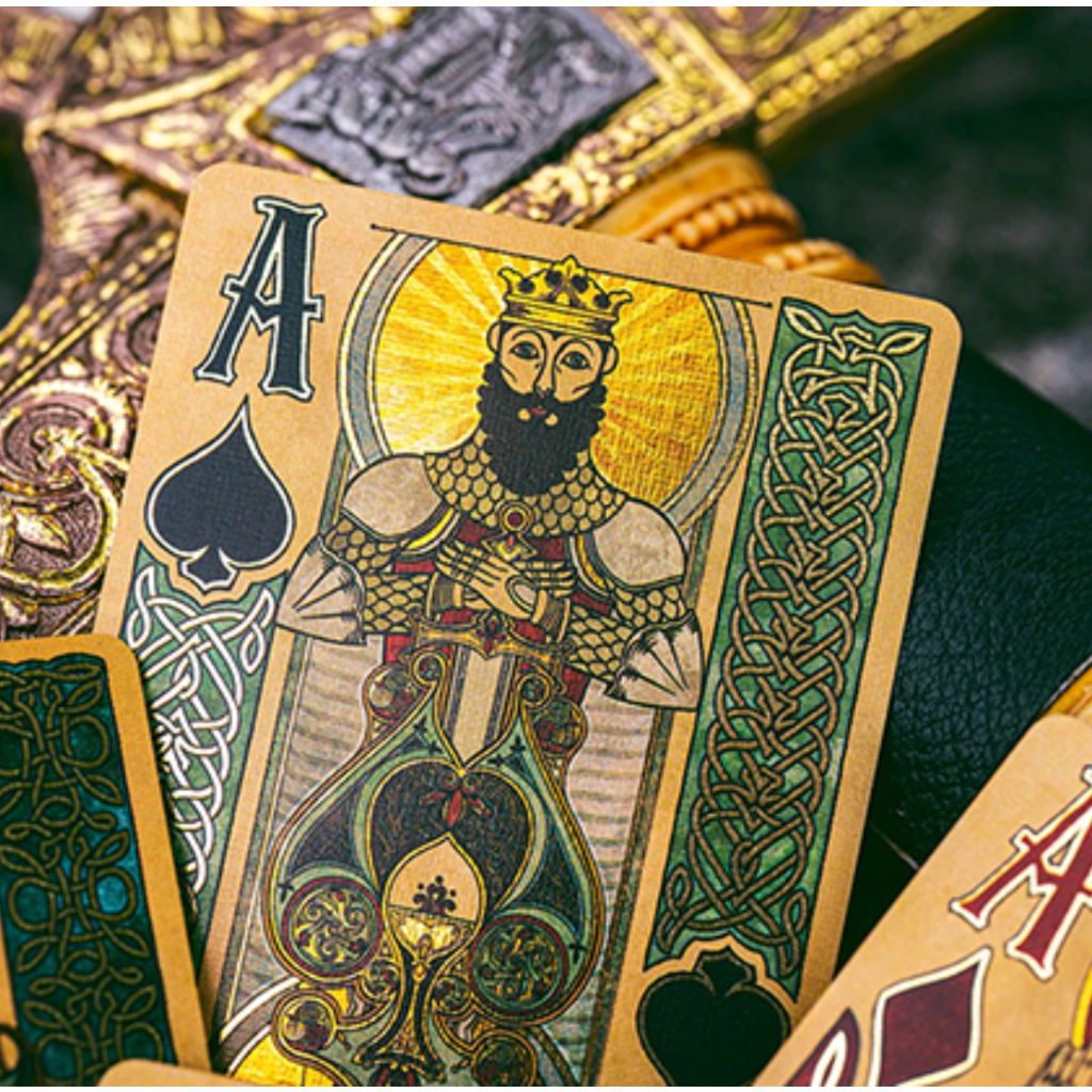 亞瑟王聖盃版撲克牌是手工插畫的中世紀撲克牌,慶祝亞瑟王的故事和傳說,以及圍繞他宮廷的許多角色,延續了數百年。這副中世紀撲克牌的插圖風格靈感來源於《凱爾斯之書》,該書被認為源於與亞瑟王傳說大致相同的地理區域。