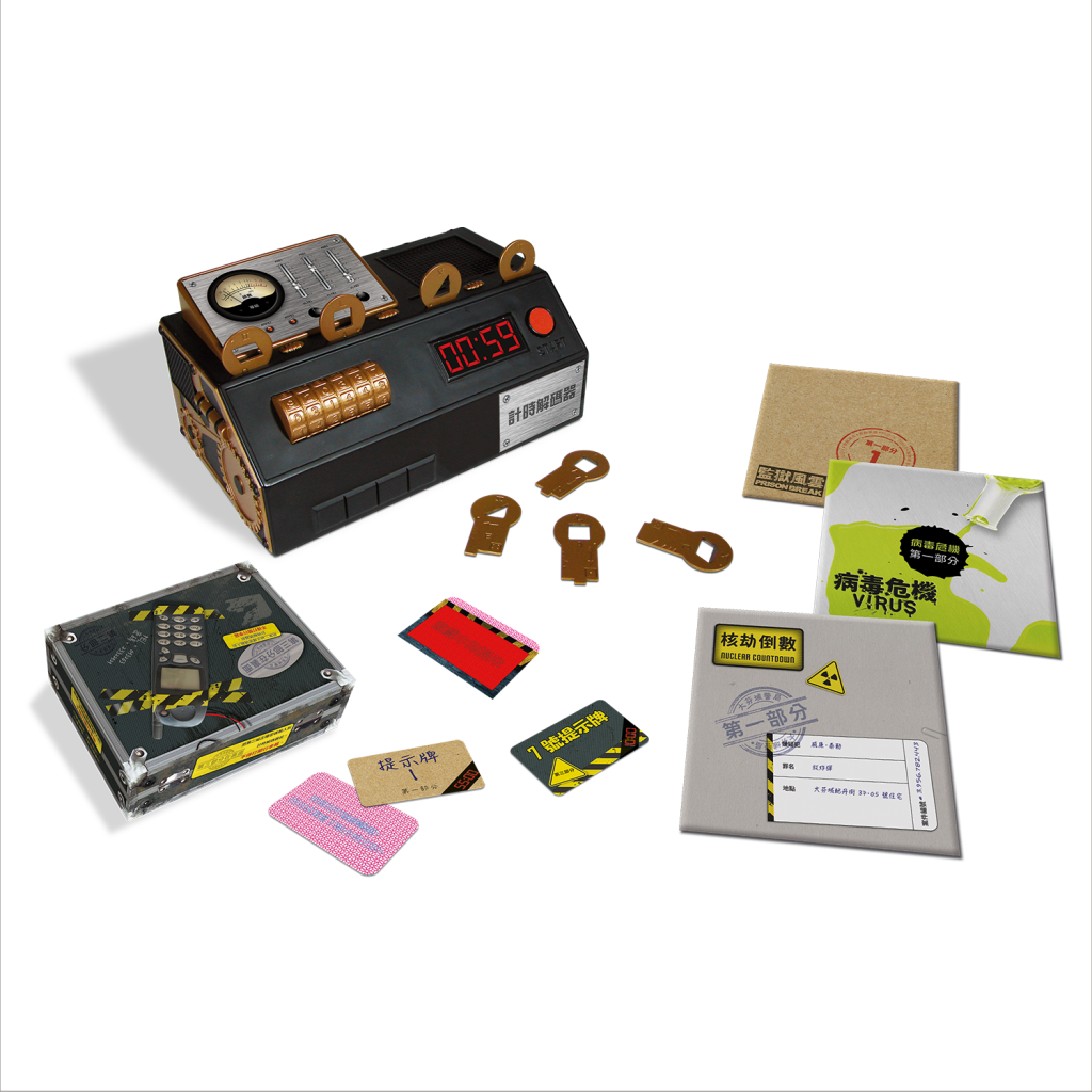 世界首套附音效晶片計時儀器的桌上密室遊戲,讓你在家也能身歷其境,讓你體會時間一分一秒逼近的緊張感.....