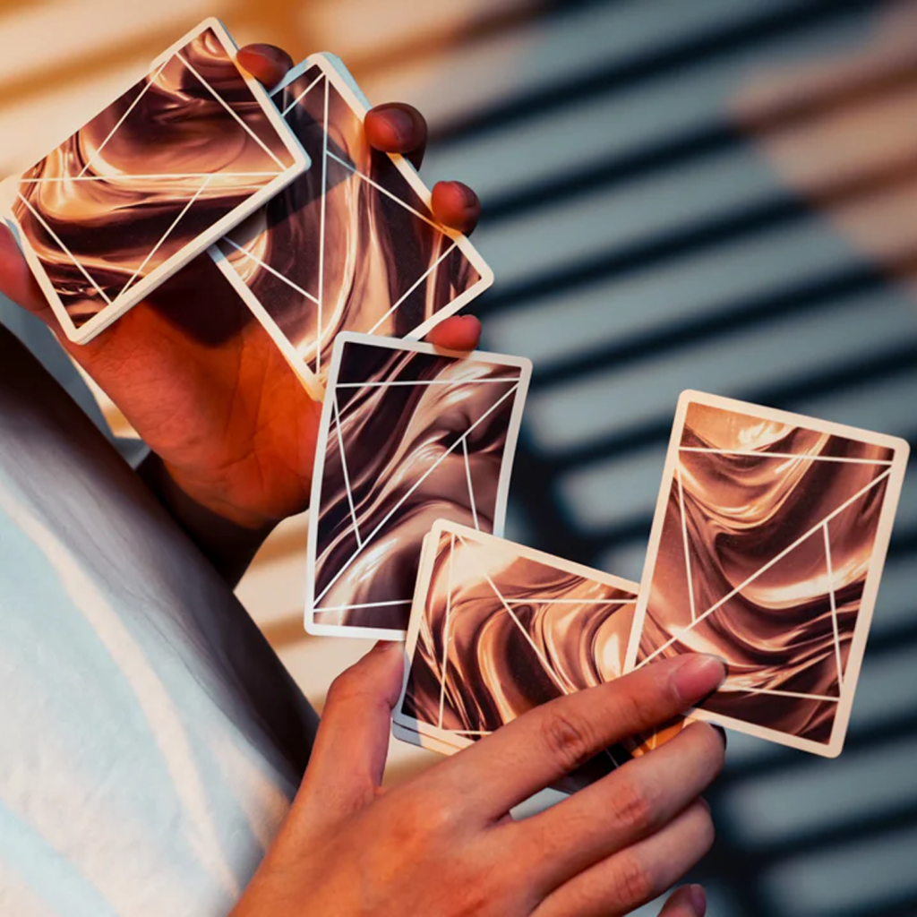 當牌組在您手中翻動起伏時,細緻的巧克力色澤會緩緩融入奶油色中,在指尖營造出如絲絨般滑順的流動感。