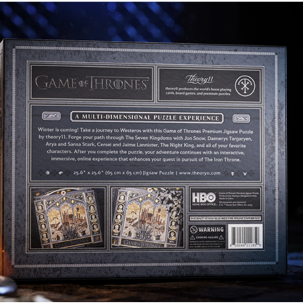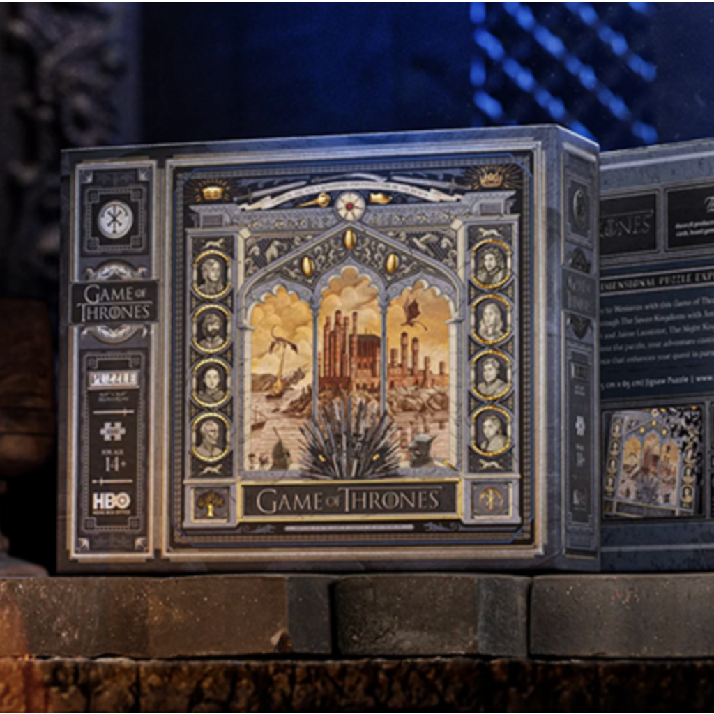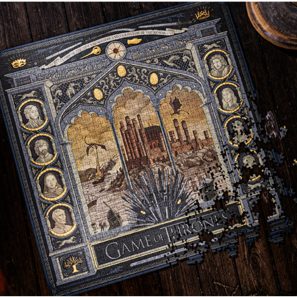 在「權力遊戲」中,不成功,便成仁。這款 1,000 片頂級拼圖將維斯特洛(Westeros)大地生動呈現在您眼前,邀您共同譜寫一曲《冰與火之歌》。拼圖碎片飾有優雅的金箔細節,並細心地收納在高質感的專屬隨行袋中。
