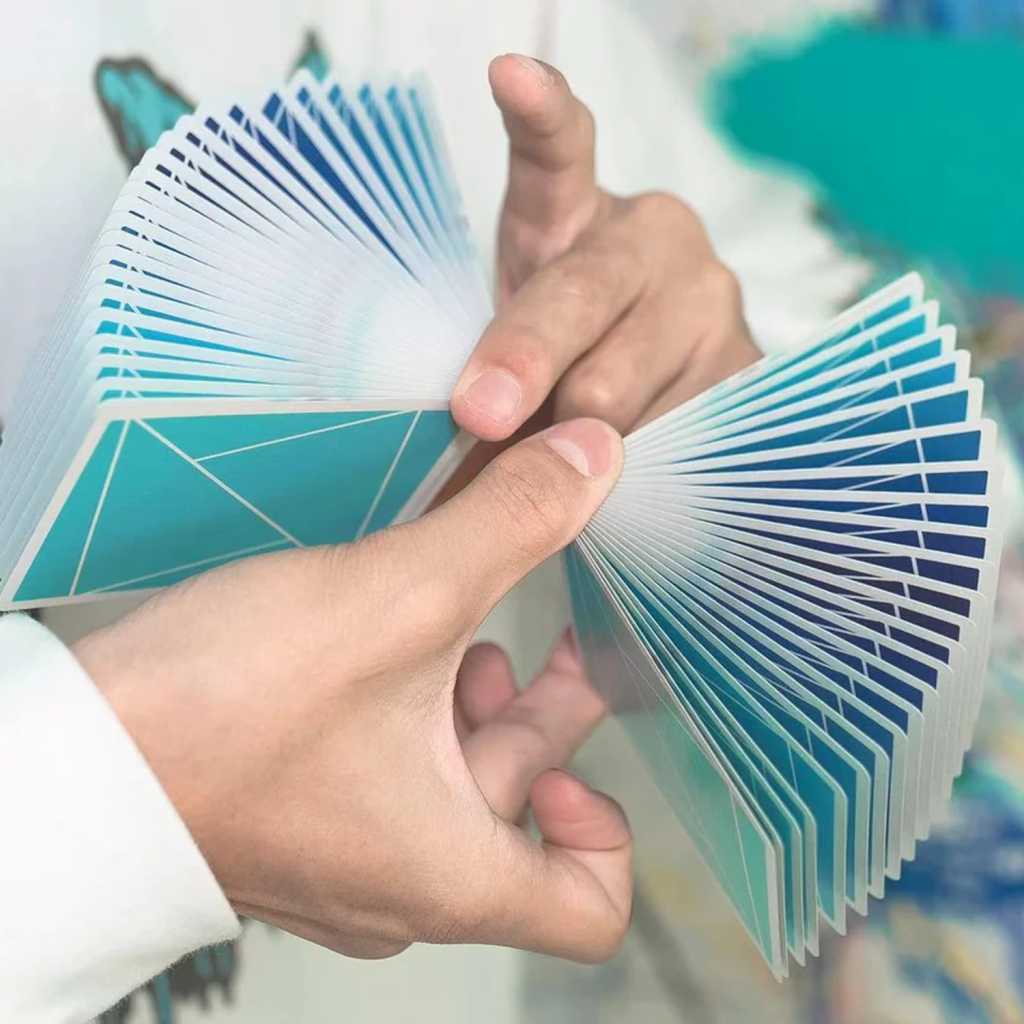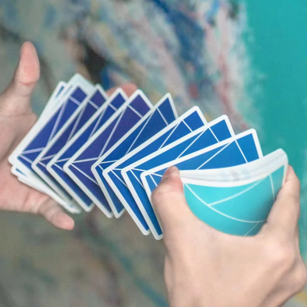 牌背顏色由淺入深過渡,為您的每一次練習提供極具美感的體驗。從清新明亮的薄荷綠開始,轉向生動的天藍色,再到純淨的矢車菊藍……最後以深邃的午夜藍收尾。藍綠色系的類比色平滑地分佈在牌背上。
