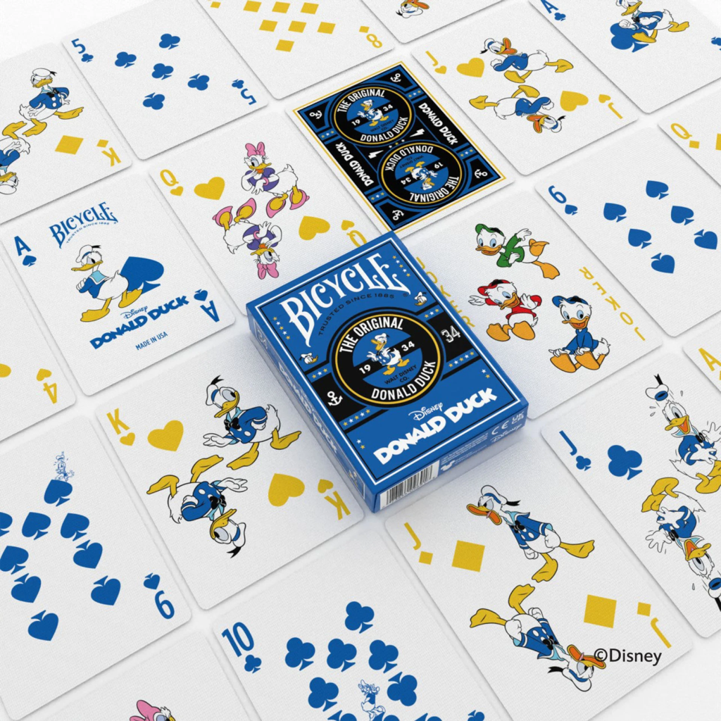 迪士尼經典唐老鴨自行車撲克牌展示了原來的不滿鴨子,充滿了異想天開的樂趣。這些卡片配有訂製卡片背面和局部清漆折疊盒,是您的美好時光。